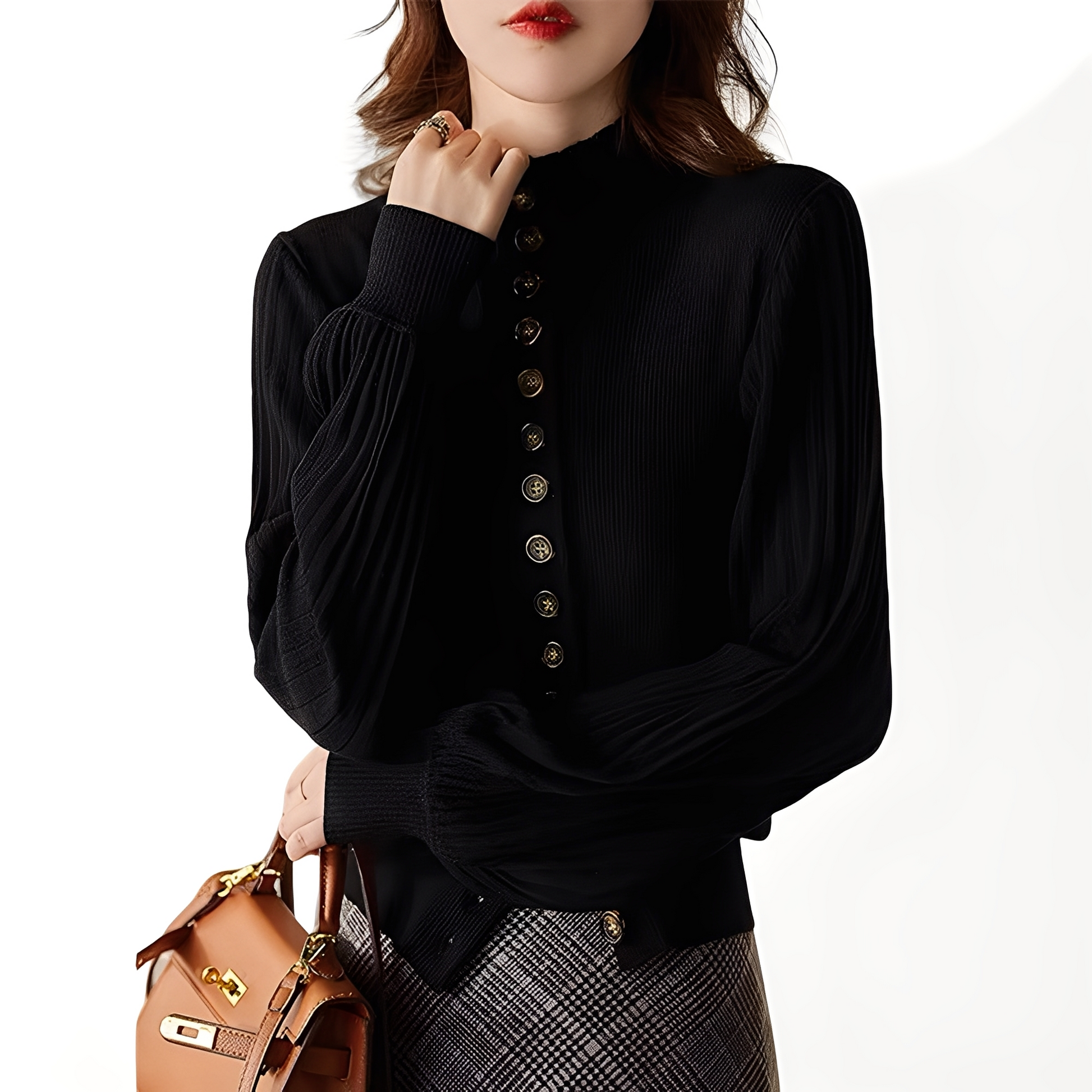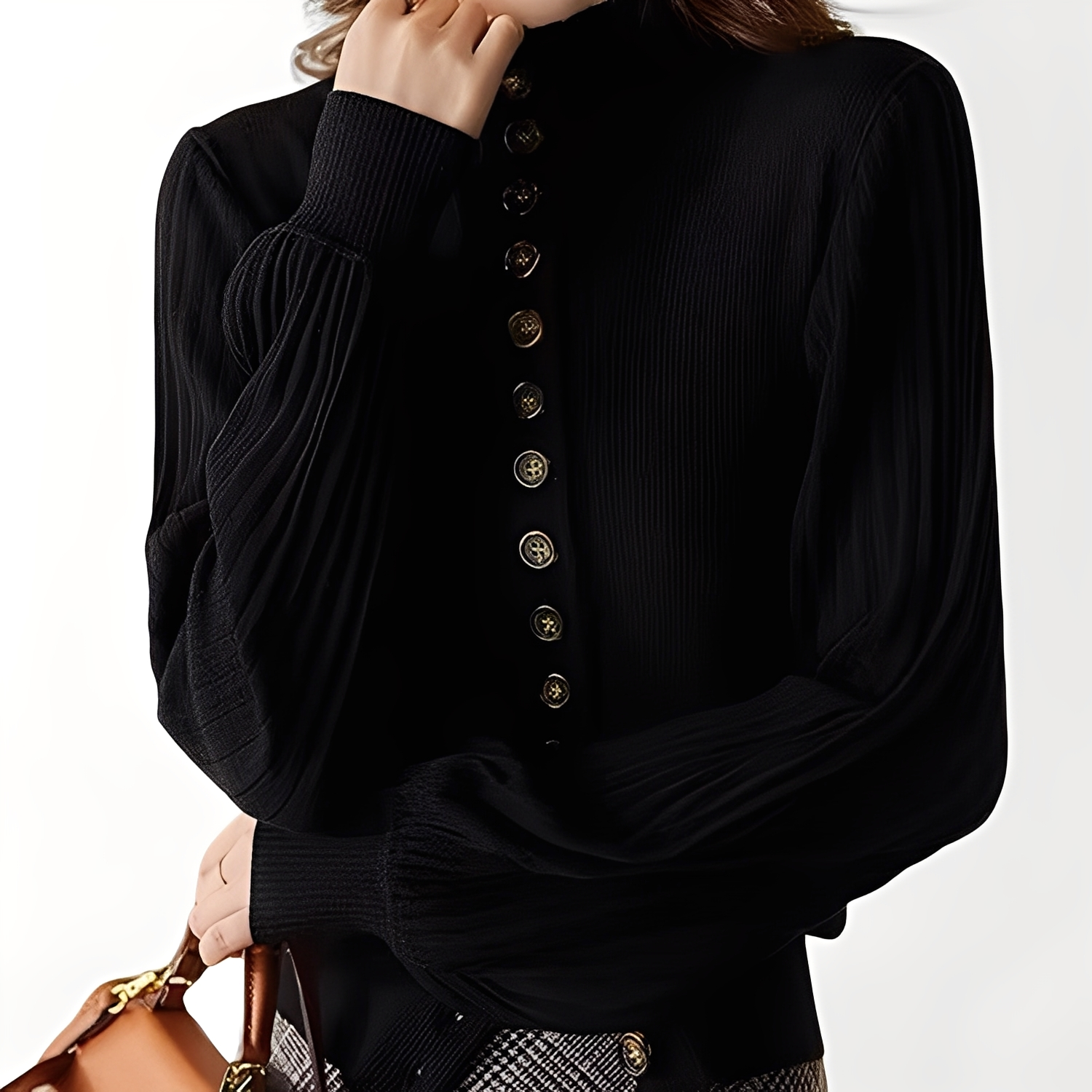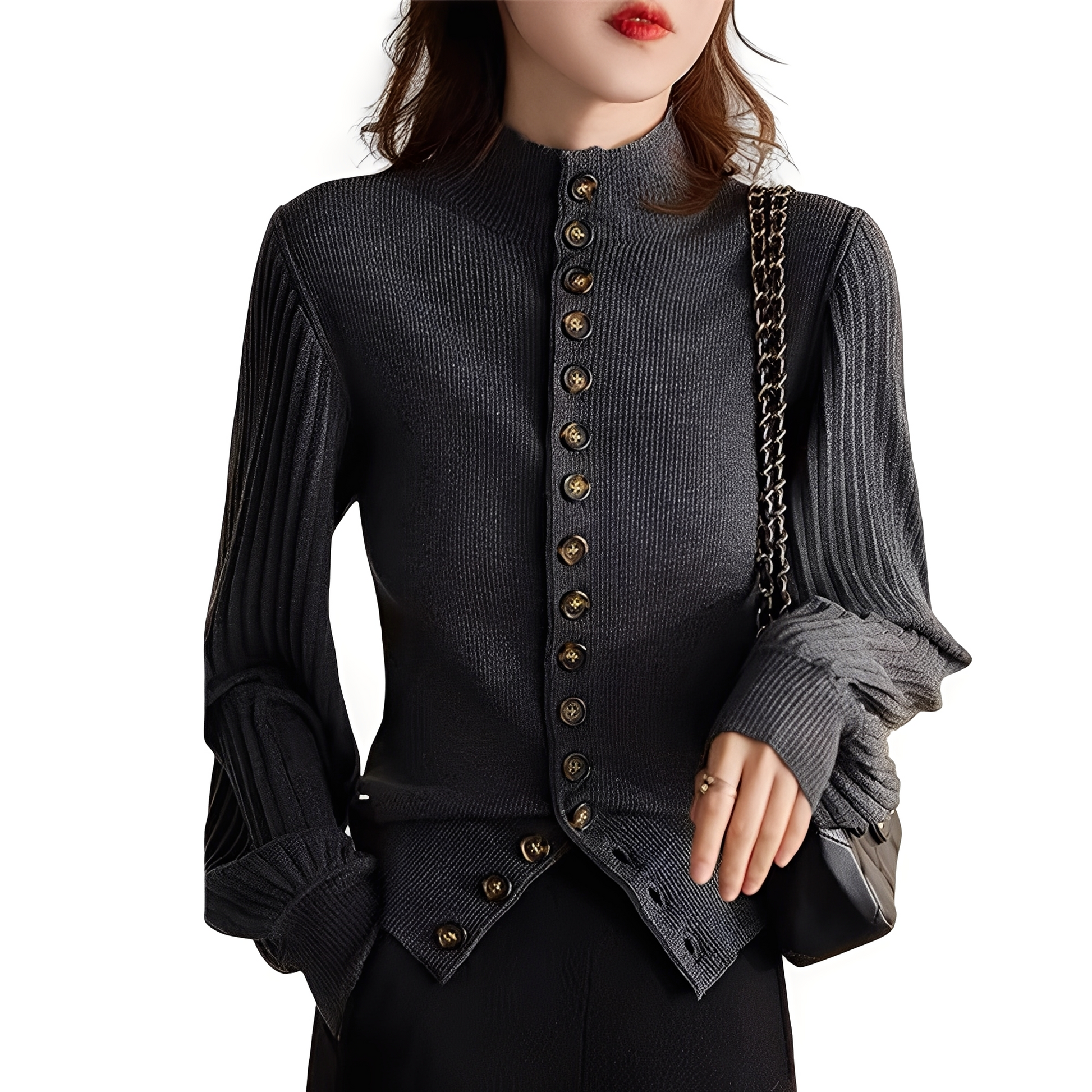 Darum sollte ‚Adelyn - Strickoberteil mit hohem Kragen, Knöpfen und weiten Ärmeln‘ in Ihrem Kleiderschrank sein:
