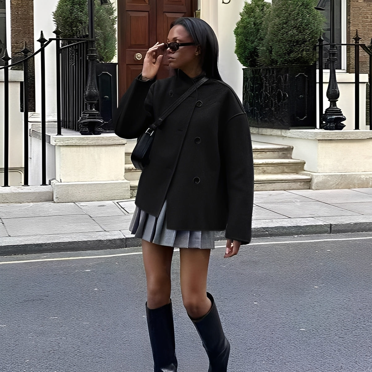 Die Eustacia Winterjacke vereint ein stilvolles Design mit nützlicher Wärmespeicherung. Ihr geschickter Schnitt betont die Figur, während das weiche Innenfutter zuverlässig warm bleibt. Die erstklassigen Materialien und das einfache Farbdesign machen sie zum idealen Begleiter für elegante Wintertage. Ob im Büro oder beim Stadtbummel – Eustacia verleiht jedem Outfit einen Hauch von Eleganz. Eine Jacke, die Mode und Funktion perfekt kombiniert.