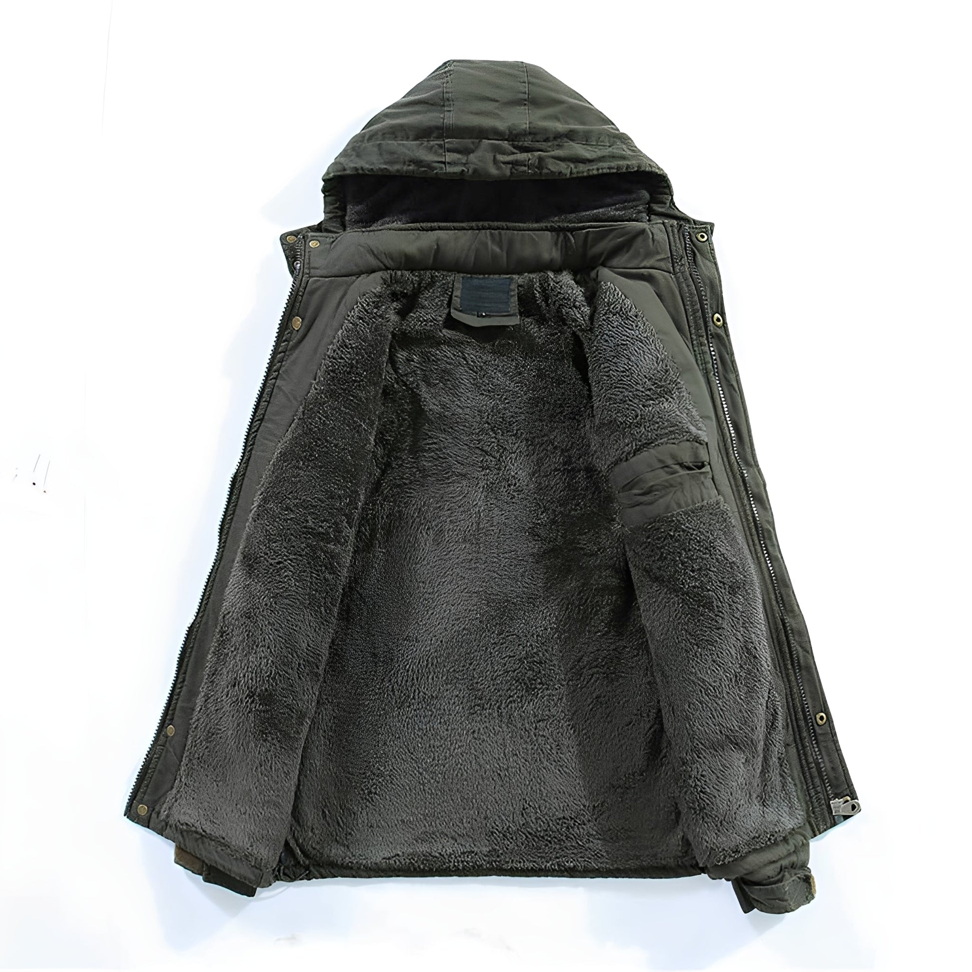 Die James Winterjacke ist perfekt für Herren, die auch bei Kälte stilvoll aussehen möchten. Ihr elegantes Design und die warme Fütterung schützen hervorragend vor Wind und Kälte. Die praktische Kapuze, nützliche Details und der bequeme Schnitt machen sie zur idealen Alltagsjacke. Ob zur Arbeit, in der Freizeit oder beim Stadtbummel – James passt zu Ihrem Stil und hält Sie warm. Eine Jacke, die Komfort und Stil gekonnt verbindet.Darum sollte „James“ in Ihrem Kleiderschrank nicht fehlen: