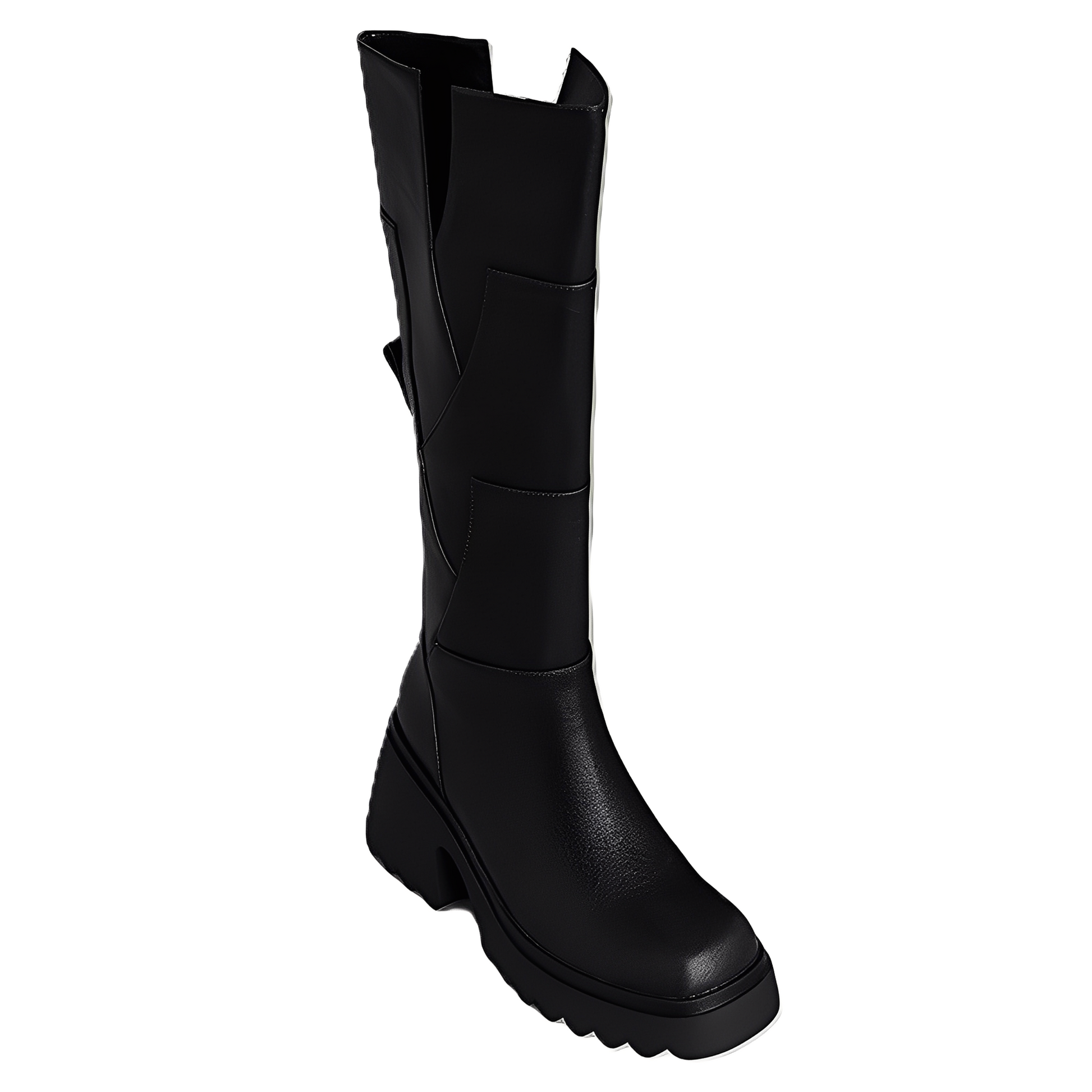 Die Madelaine-Stiefel beeindrucken durch ihr markantes, kräftiges Design und das hochwertige Kuhfellleder. Die geschickte Naht gibt ihnen ein besonderes Aussehen, während der praktische Reißverschluss das An- und Ausziehen erleichtert. Diese Stiefel sind perfekt für alle, die bequeme Schuhe mit auffälligem Stil wollen.