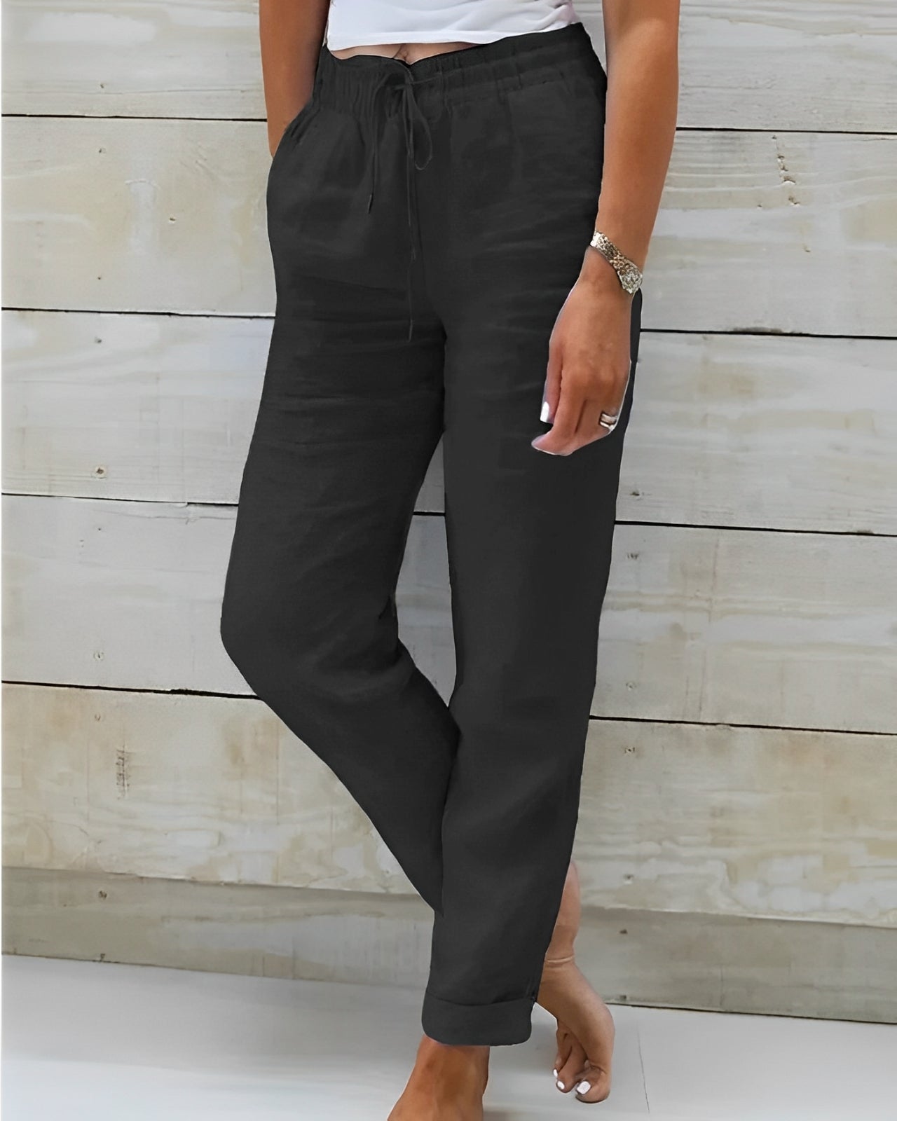 Definieren Sie täglichen Stil neu mit dieser Damen-Casualhose mit Kordelzug – die perfekte Mischung aus Komfort und Stil. Diese Hose ist für die moderne Frau gemacht und bietet ein entspanntes und schickes Aussehen – ein unverzichtbares Stück für jede Garderobe.