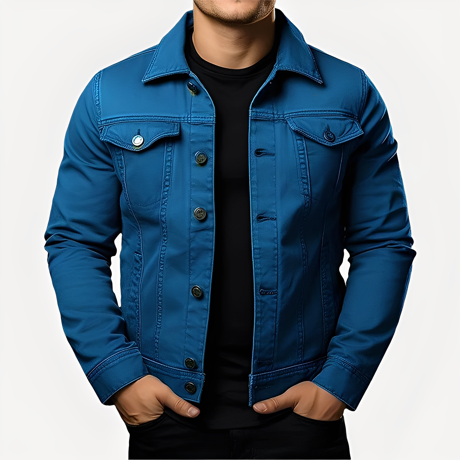 Eine Jacke, die Stil, Wärme und Bequemlichkeit geschickt kombiniert.