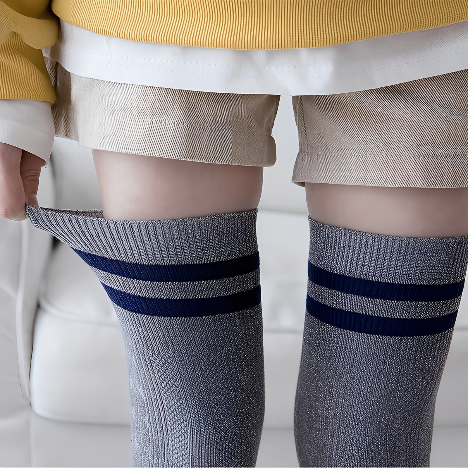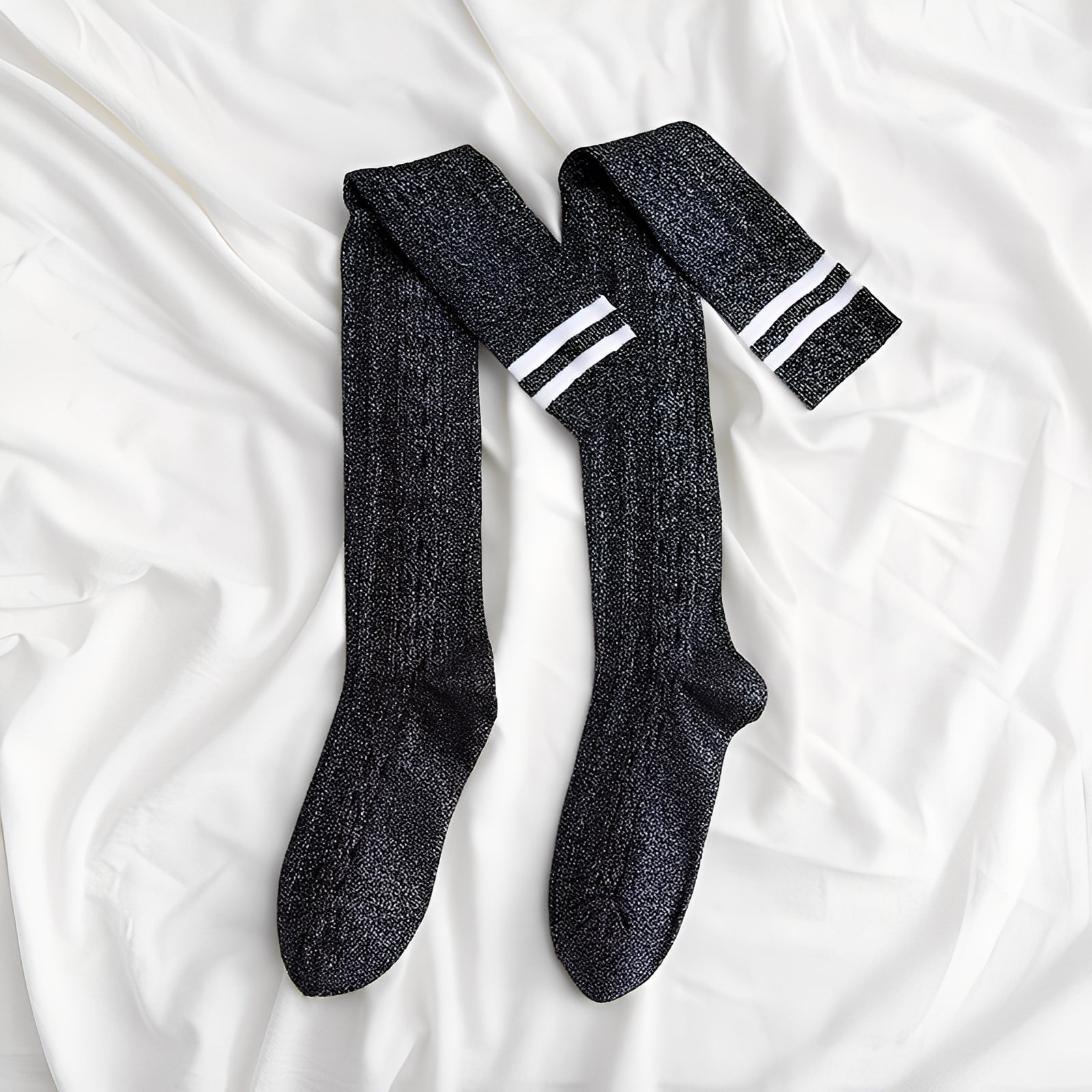 Die Zella-Socken vereinen ein modernes Overknee-Design mit angenehm warmem, weichem Material. Sie passen sich den Beinen gut an und halten warm, während das elastische Material guten Halt bietet. Ideal für den Alltag, Homeoffice oder entspannte Spaziergänge im Winter. Ihr schickes Design macht sie zu einem vielseitigen Accessoire für jede Garderobe.